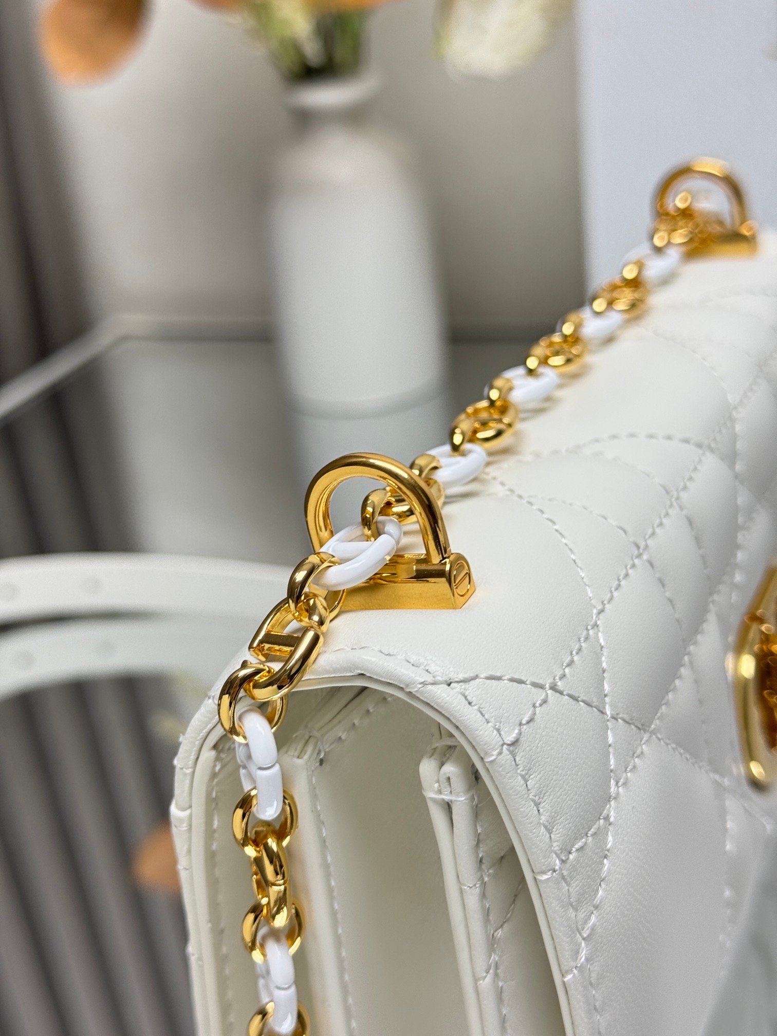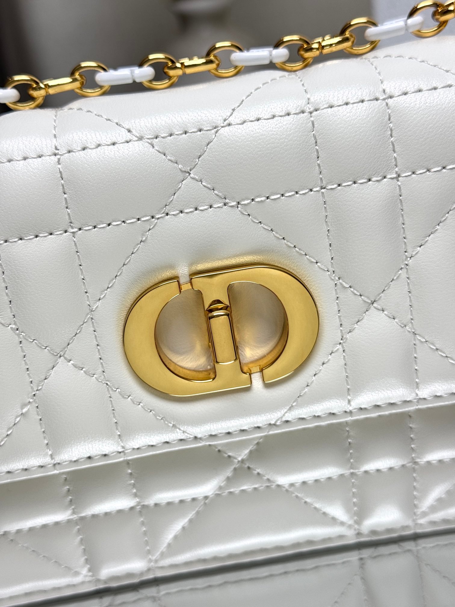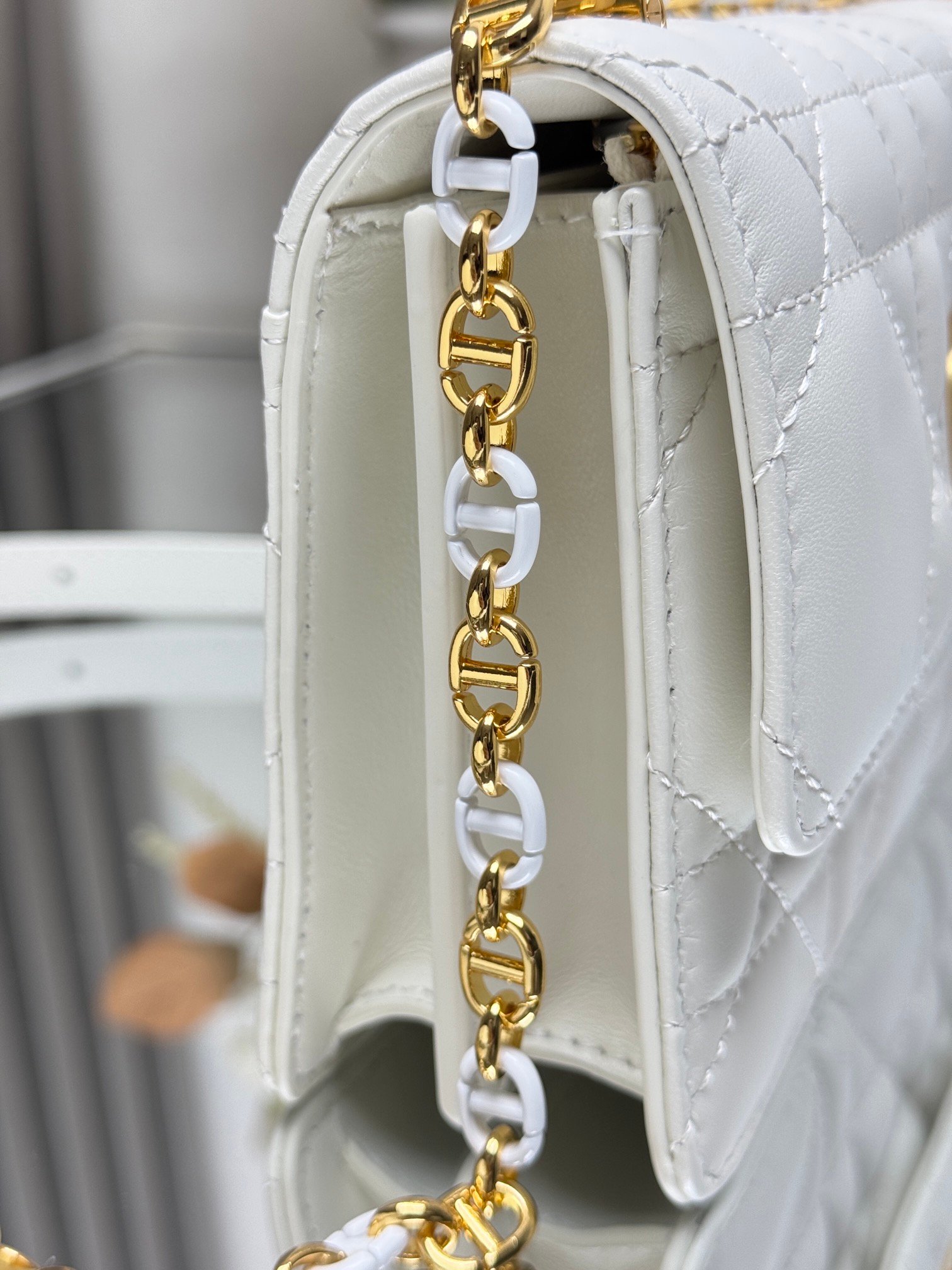 Metal fittings: gold-plated/ruthenium metal parts are anti-oxidation and engraved with the “CD” or “DIOR” logo to show identity.