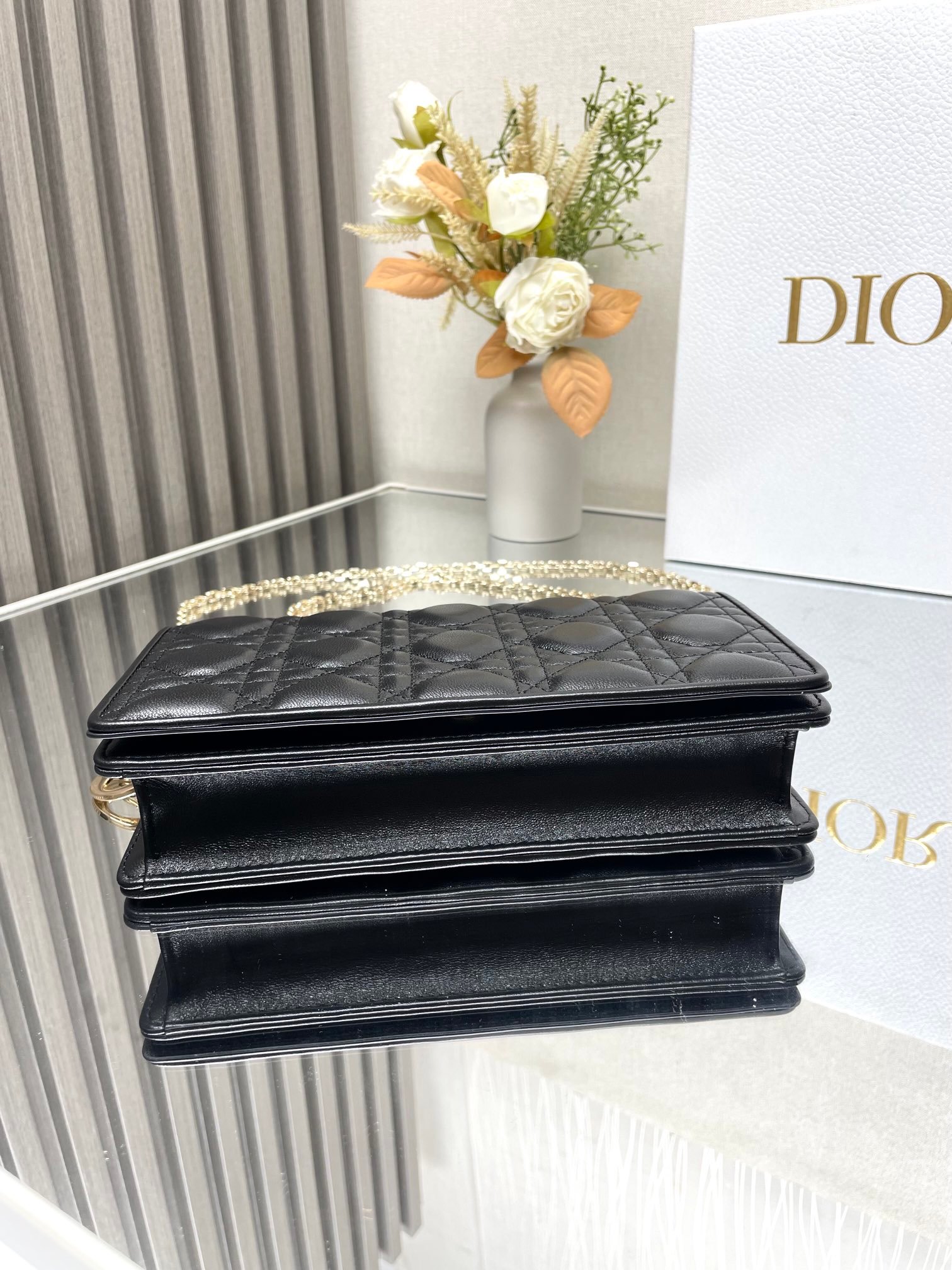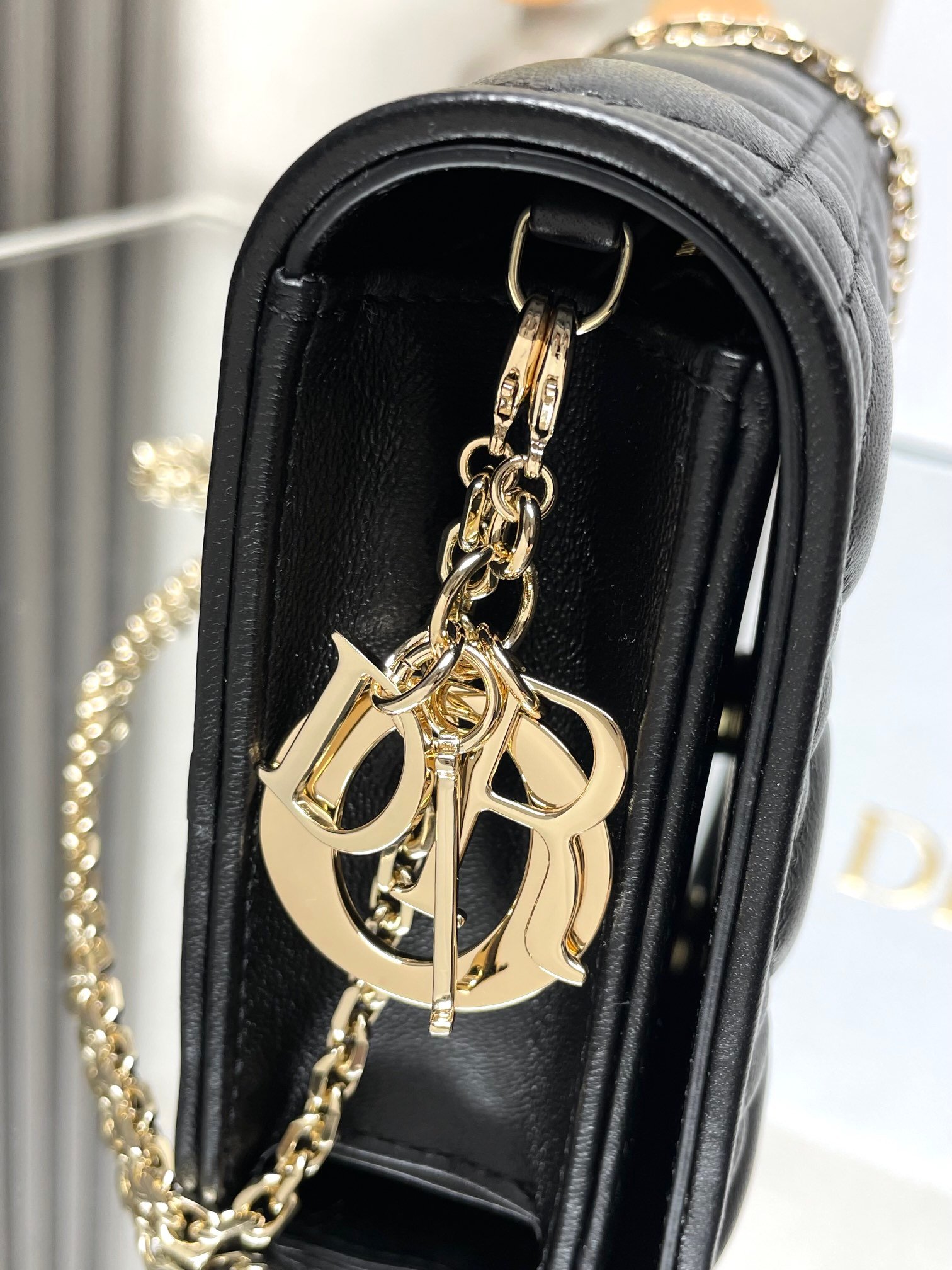 Metal fittings: gold-plated/ruthenium metal parts are anti-oxidation and engraved with the “CD” or “DIOR” logo to show identity.