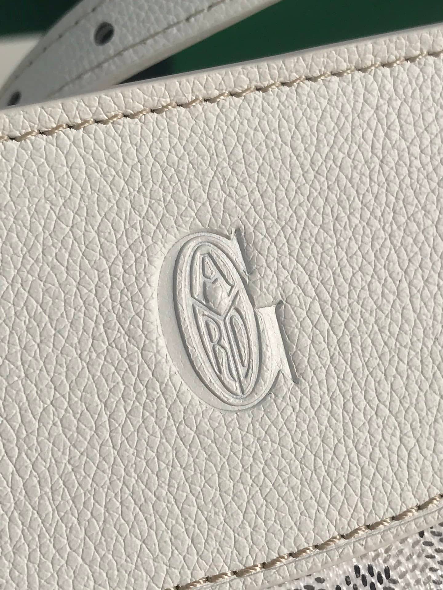 Goyardine canvas: The brand’s patented coated canvas is lightweight, waterproof and abrasion-resistant, with a hand-painted Y-shaped pattern on the surface for a unique touch.