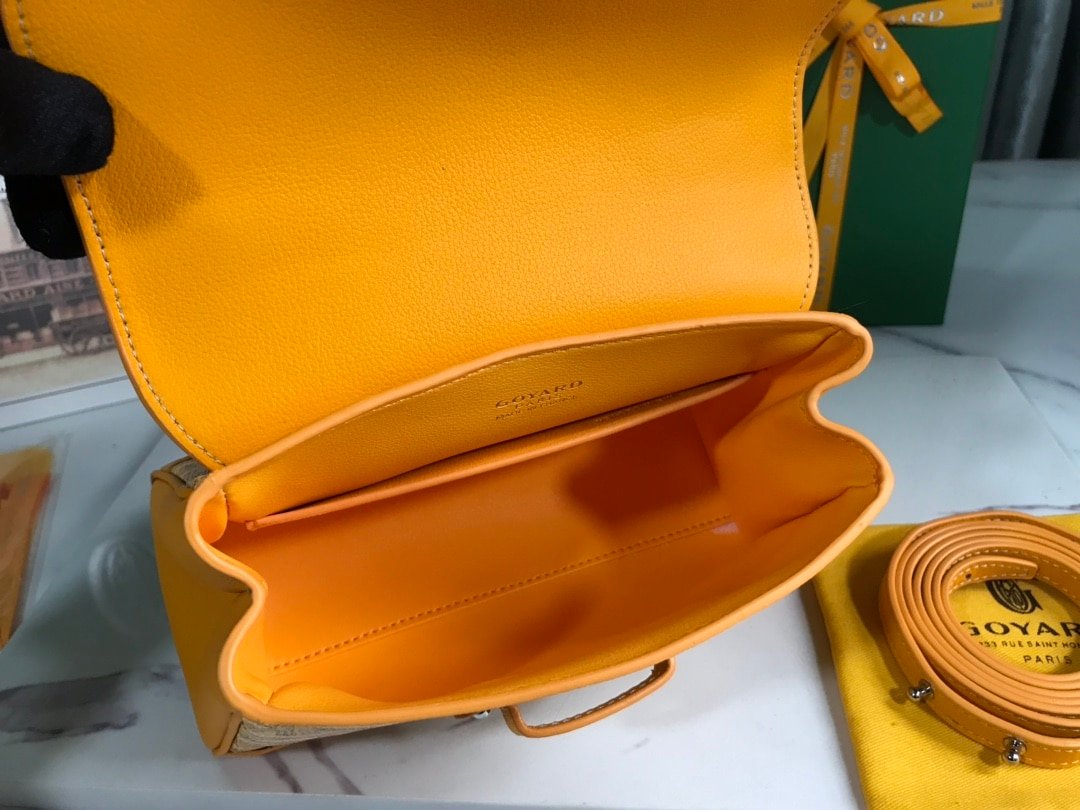 Goyardine canvas: The brand’s patented coated canvas is lightweight, waterproof and abrasion-resistant, with a hand-painted Y-shaped pattern on the surface for a unique touch.