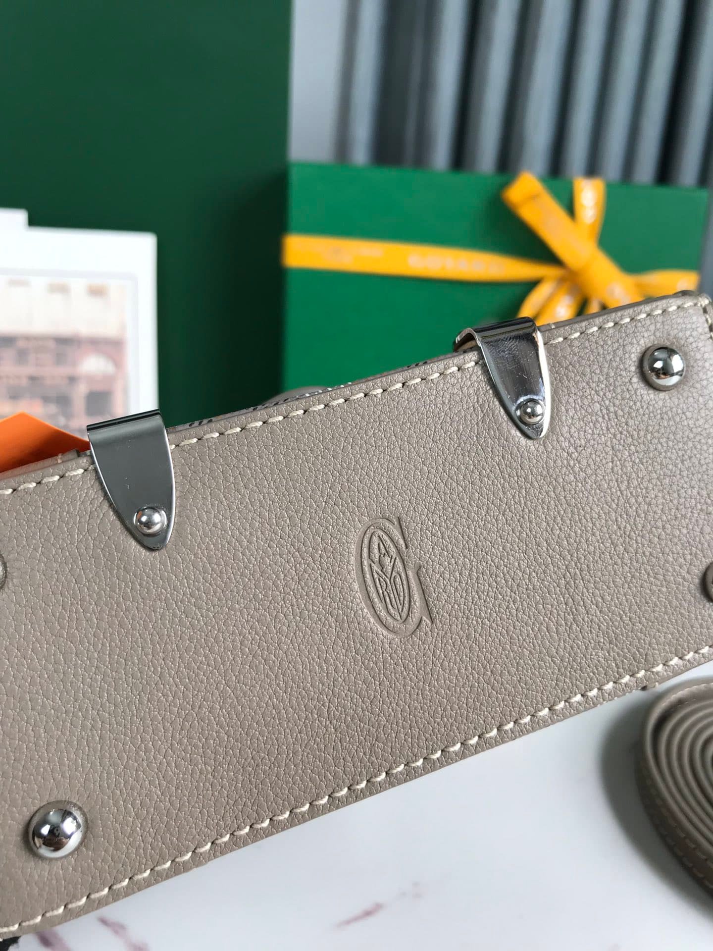 Goyardine canvas: The brand’s patented coated canvas is lightweight, waterproof and abrasion-resistant, with a hand-painted Y-shaped pattern on the surface for a unique touch.