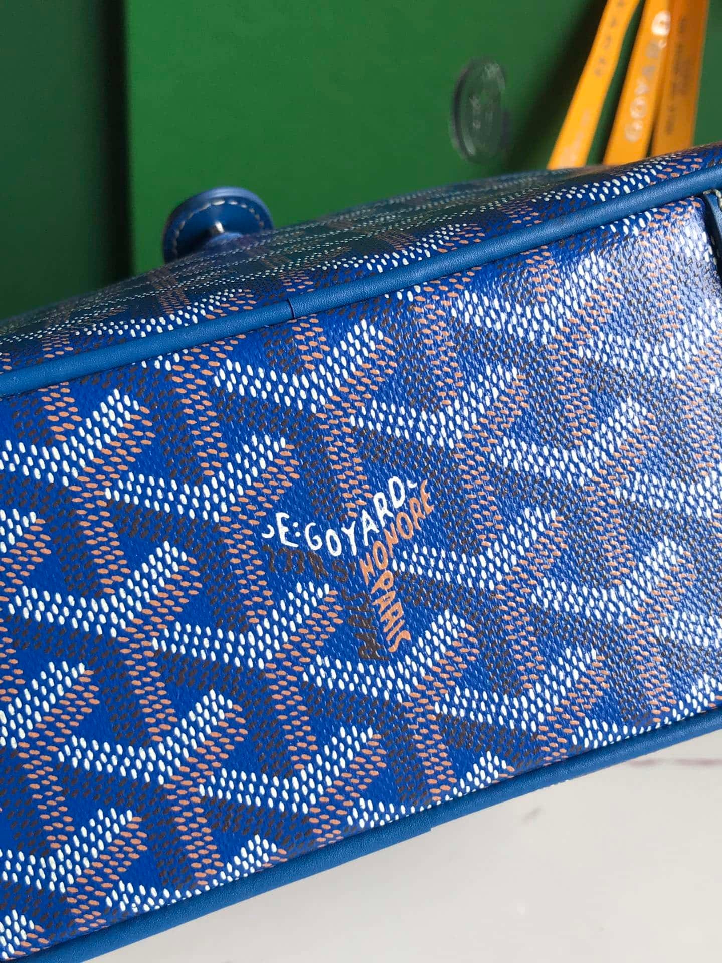 Goyardine canvas: The brand’s patented coated canvas is lightweight, waterproof and abrasion-resistant, with a hand-painted Y-shaped pattern on the surface for a unique touch.