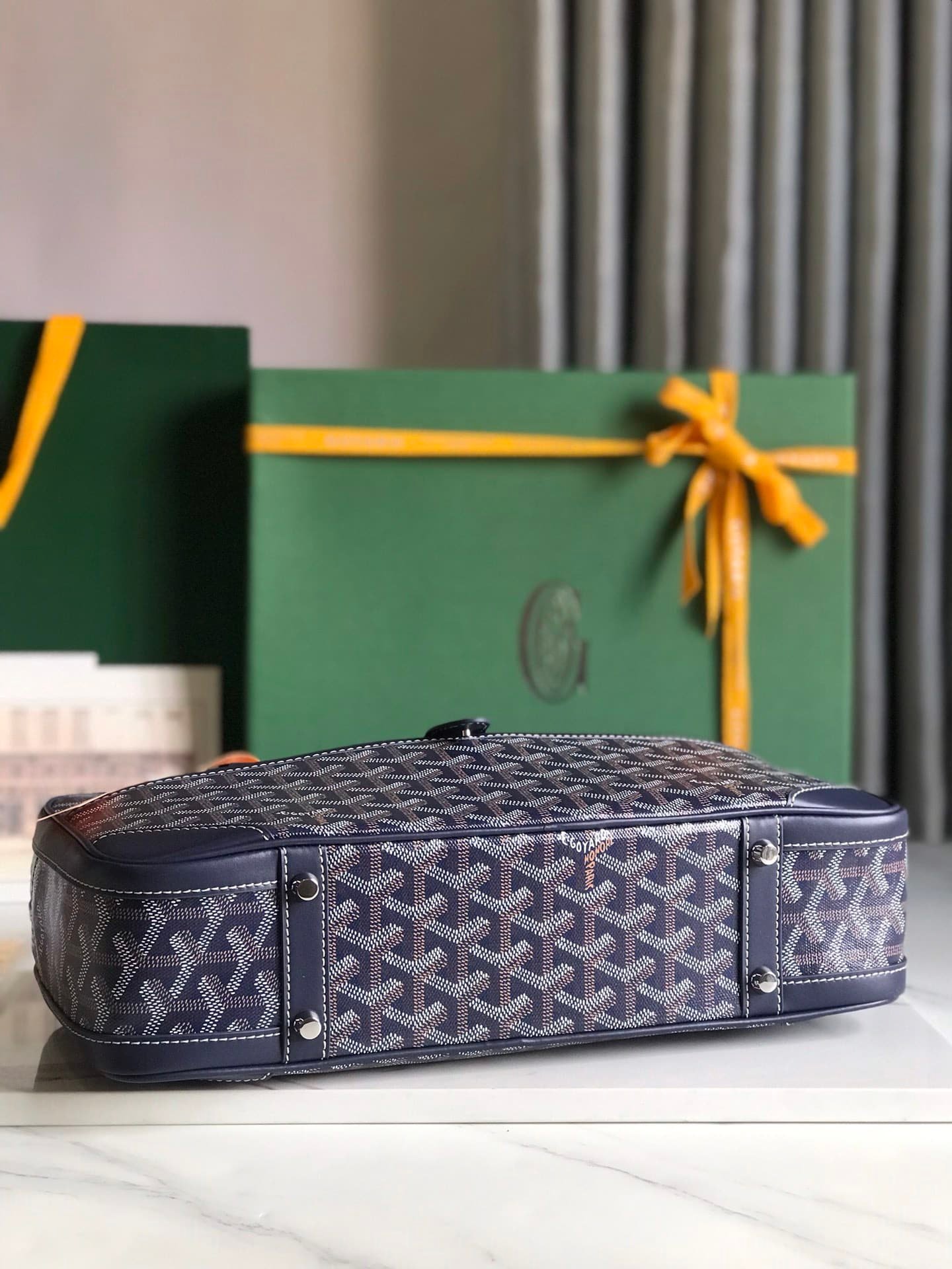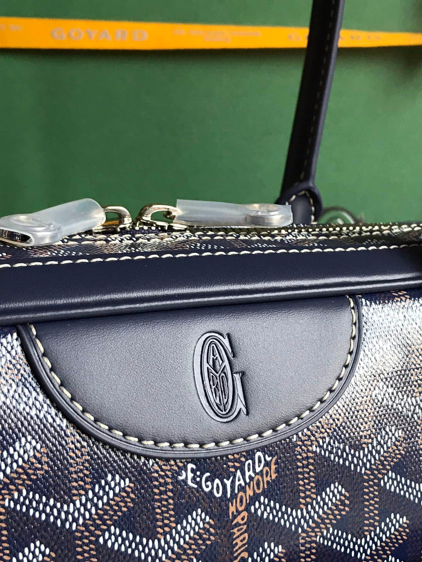 Goyardine canvas: The brand’s patented coated canvas is lightweight, waterproof and abrasion-resistant, with a hand-painted Y-shaped pattern on the surface for a unique touch.