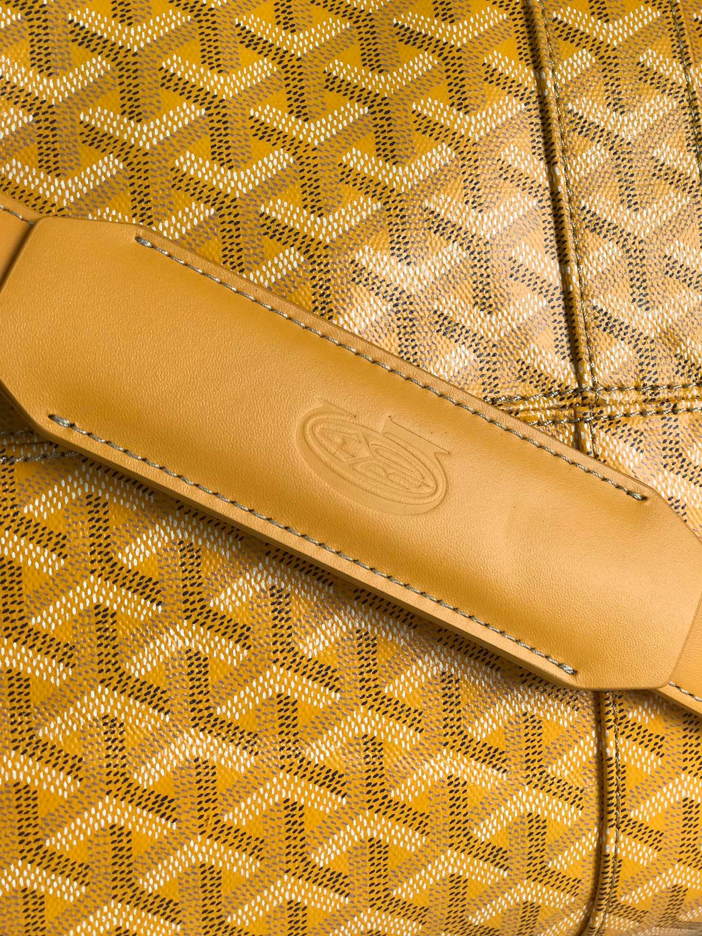 Goyardine canvas: The brand’s patented coated canvas is lightweight, waterproof and abrasion-resistant, with a hand-painted Y-shaped pattern on the surface for a unique touch.