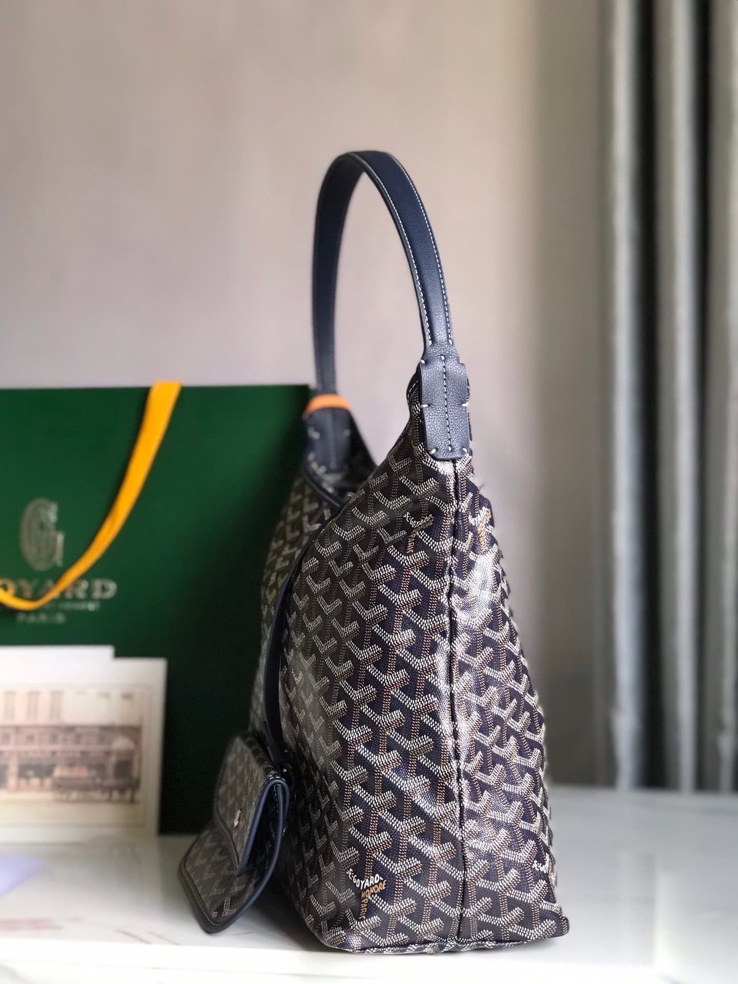 Goyardine canvas: The brand’s patented coated canvas is lightweight, waterproof and abrasion-resistant, with a hand-painted Y-shaped pattern on the surface for a unique touch.