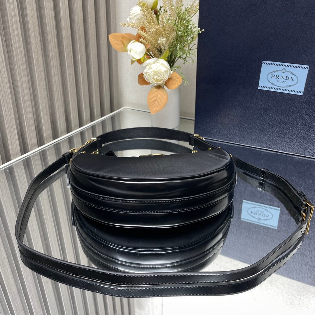 Iconic elements such as the Prada Triangle logo, Saffiano leather (cross embossed, scratch-resistant and hard-wearing), nylon (iconoclastic, lightweight and durable), etc., are instantly recognizable.
