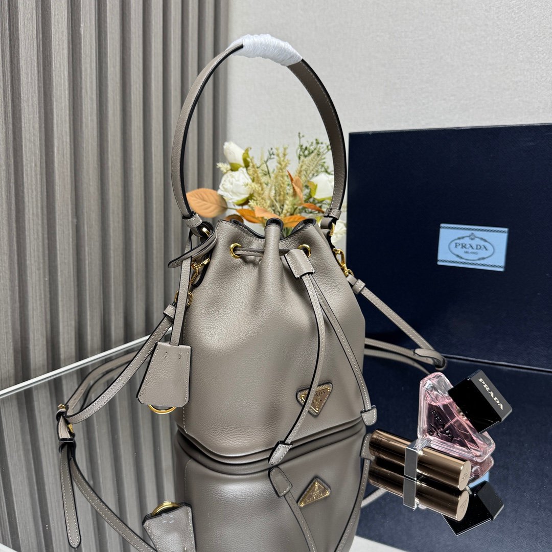 Iconic elements such as the Prada Triangle logo, Saffiano leather (cross embossed, scratch-resistant and hard-wearing), nylon (iconoclastic, lightweight and durable), etc., are instantly recognizable.