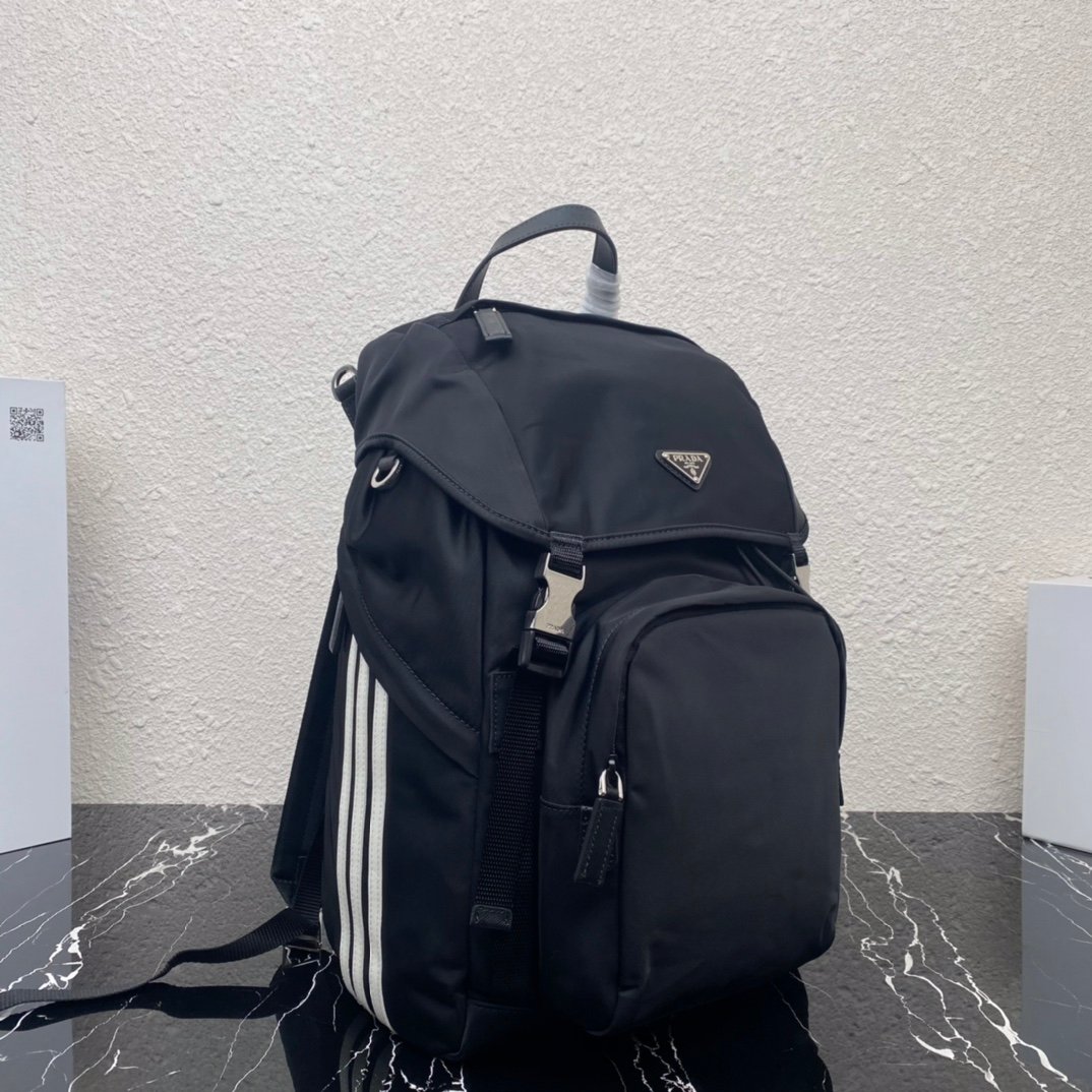 Iconic elements such as the Prada Triangle logo, Saffiano leather (cross embossed, scratch-resistant and hard-wearing), nylon (iconoclastic, lightweight and durable), etc., are instantly recognizable.