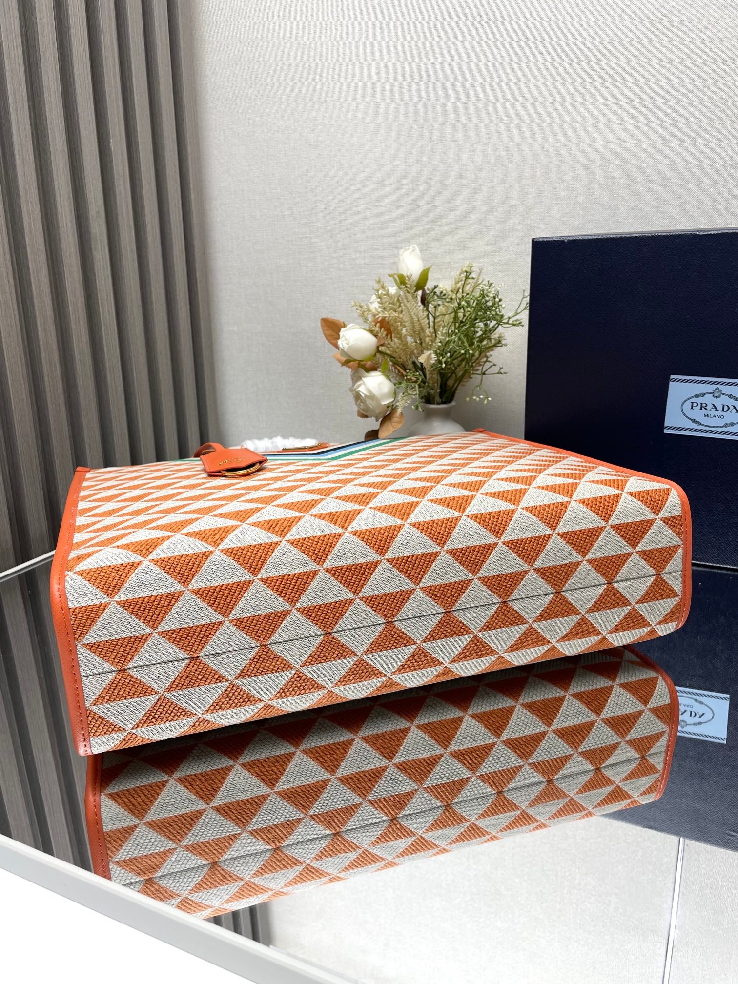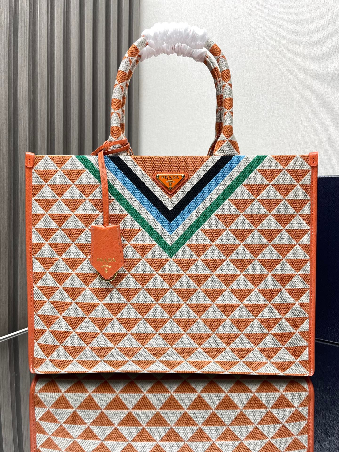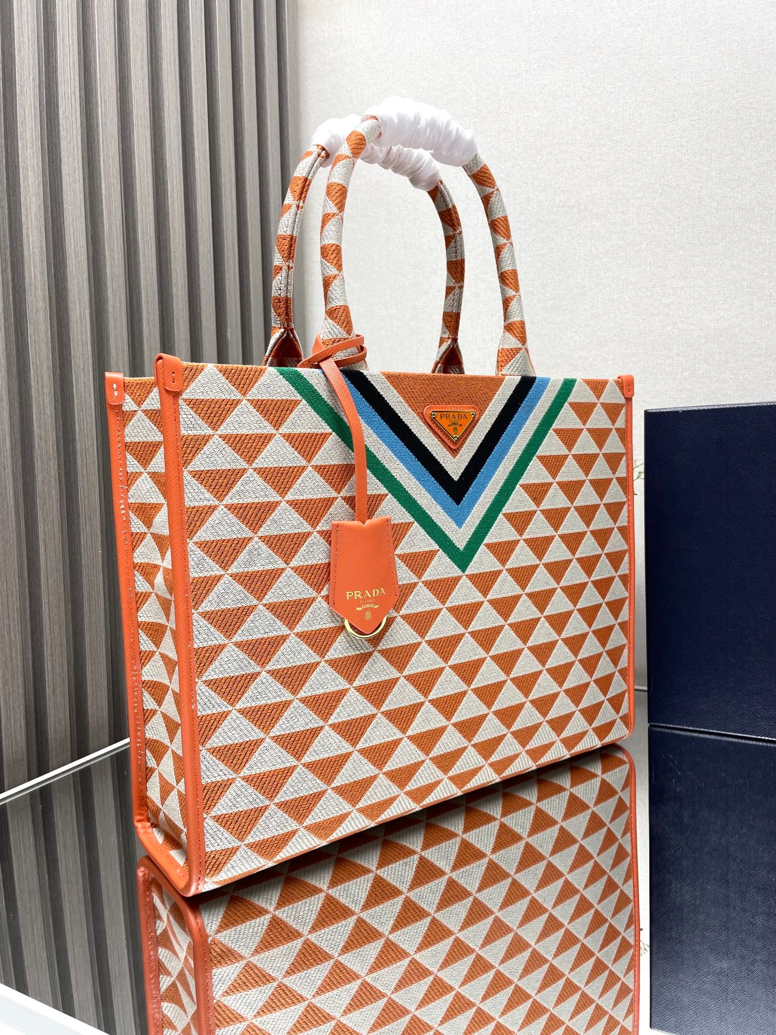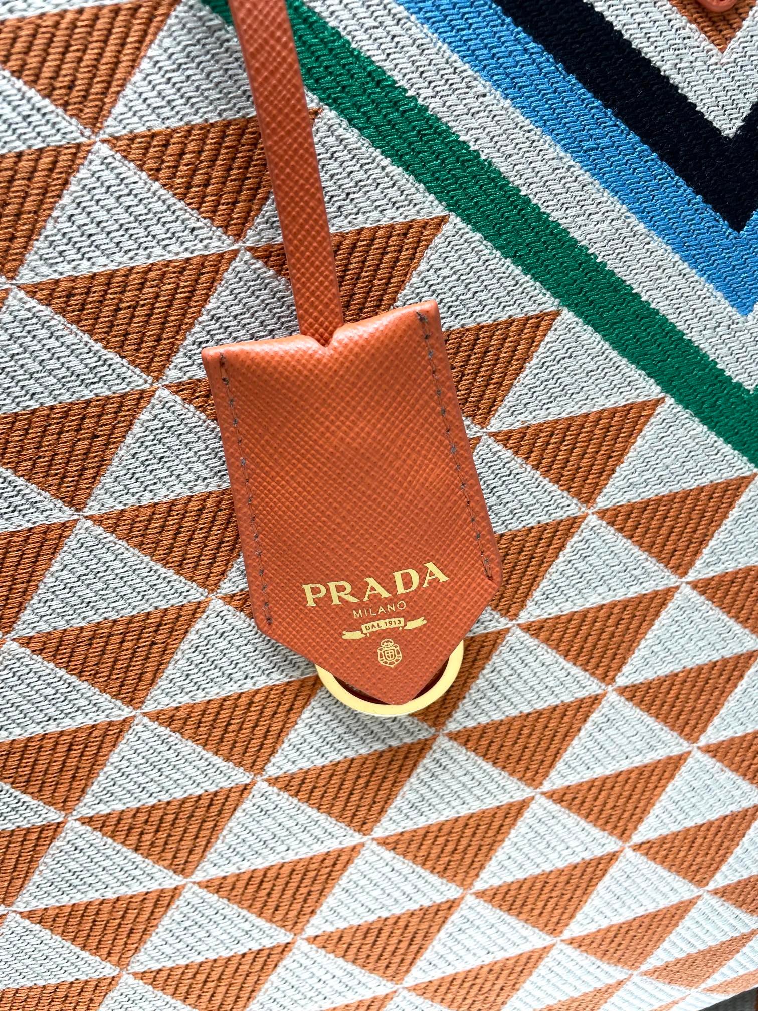 Iconic elements such as the Prada Triangle logo, Saffiano leather (cross embossed, scratch-resistant and hard-wearing), nylon (iconoclastic, lightweight and durable), etc., are instantly recognizable.