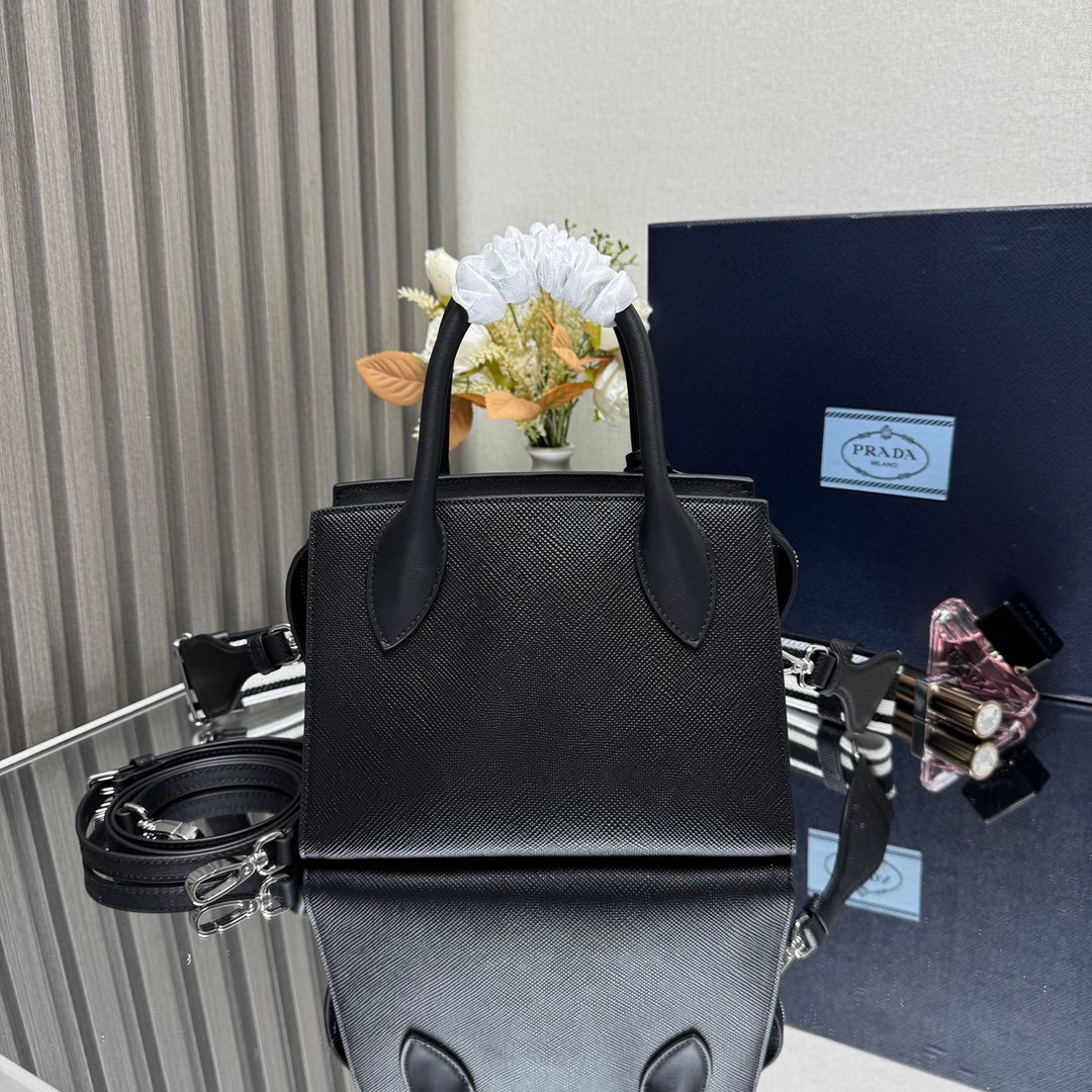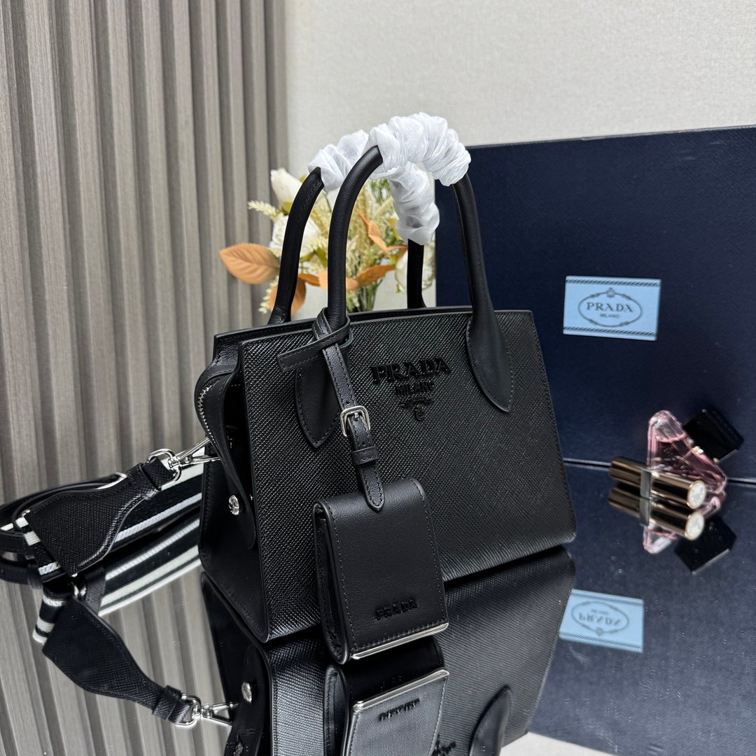 Iconic elements such as the Prada Triangle logo, Saffiano leather (cross embossed, scratch-resistant and hard-wearing), nylon (iconoclastic, lightweight and durable), etc., are instantly recognizable.