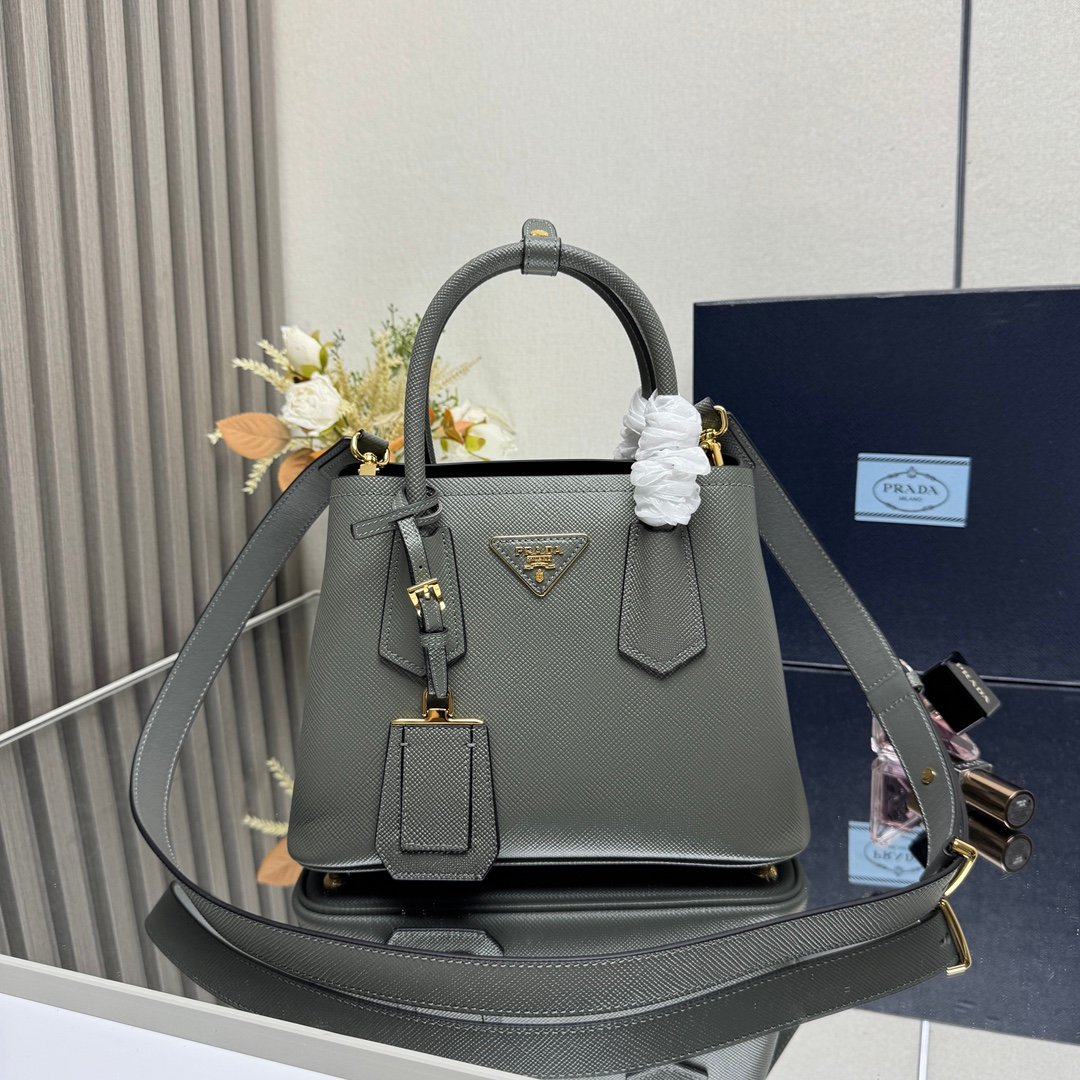 Iconic elements such as the Prada Triangle logo, Saffiano leather (cross embossed, scratch-resistant and hard-wearing), nylon (iconoclastic, lightweight and durable), etc., are instantly recognizable.