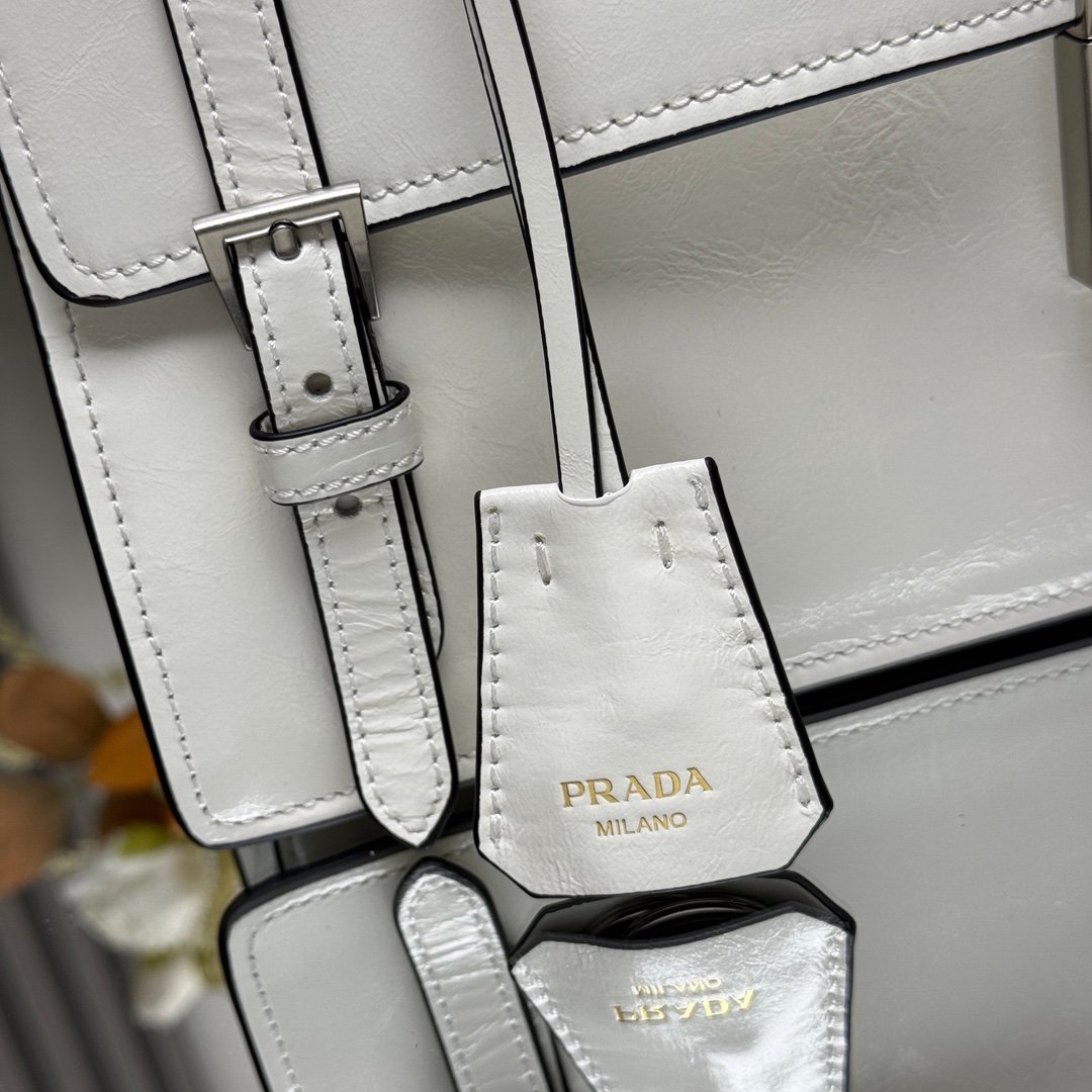 Iconic elements such as the Prada Triangle logo, Saffiano leather (cross embossed, scratch-resistant and hard-wearing), nylon (iconoclastic, lightweight and durable), etc., are instantly recognizable.