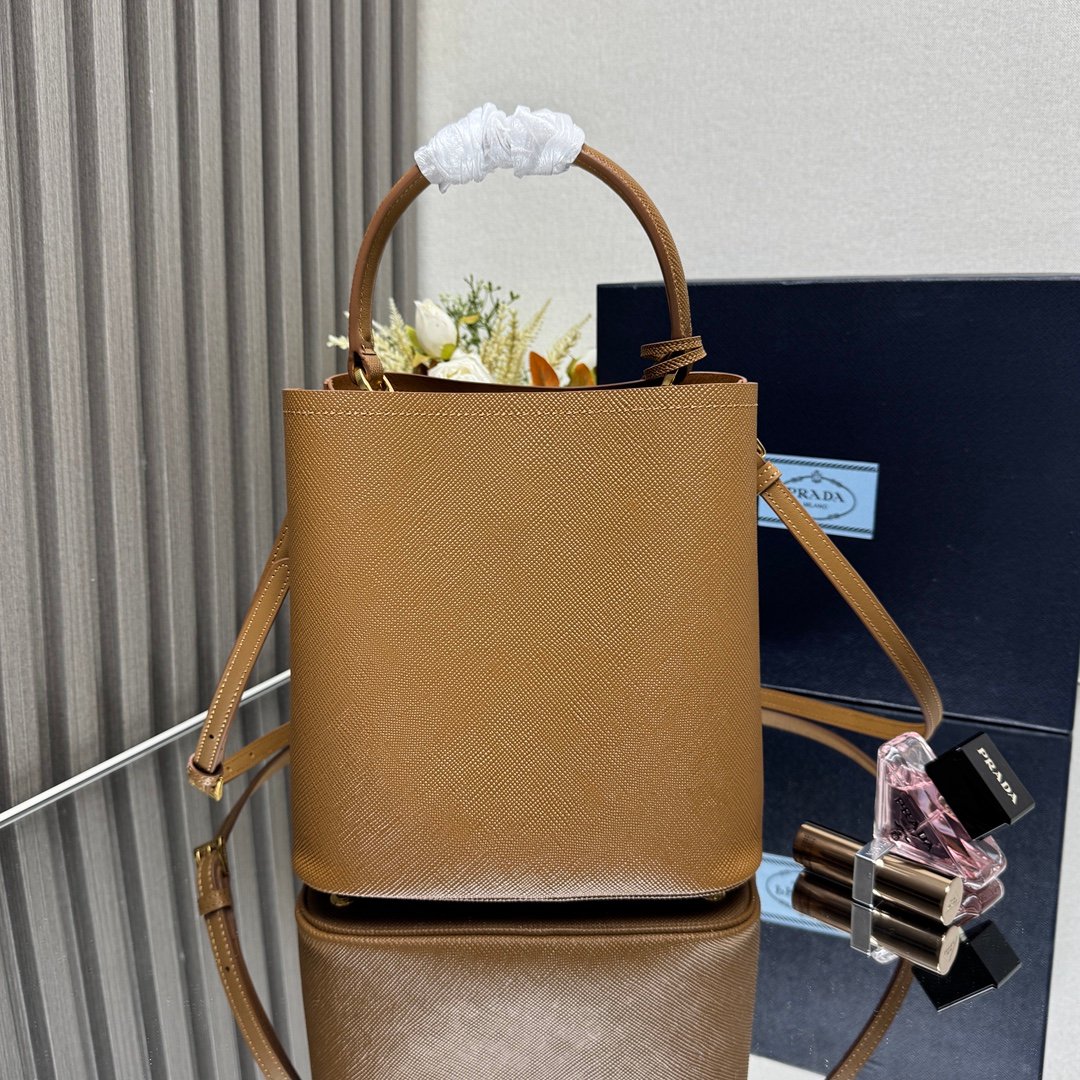 Iconic elements such as the Prada Triangle logo, Saffiano leather (cross embossed, scratch-resistant and hard-wearing), nylon (iconoclastic, lightweight and durable), etc., are instantly recognizable.