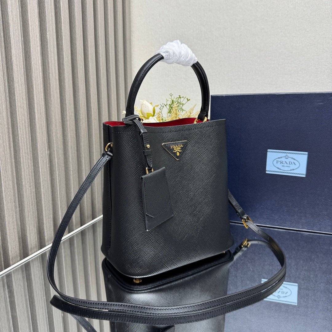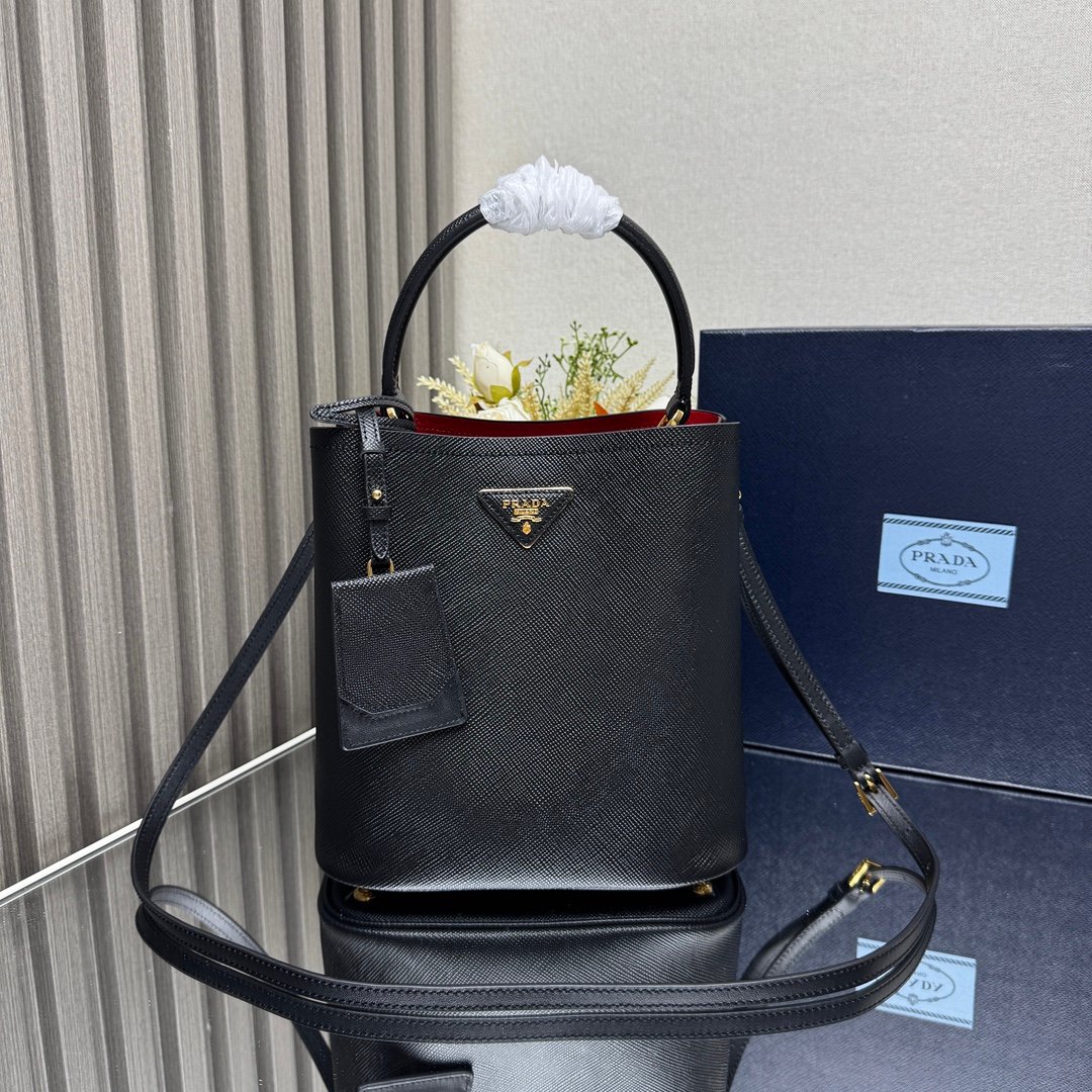Iconic elements such as the Prada Triangle logo, Saffiano leather (cross embossed, scratch-resistant and hard-wearing), nylon (iconoclastic, lightweight and durable), etc., are instantly recognizable.