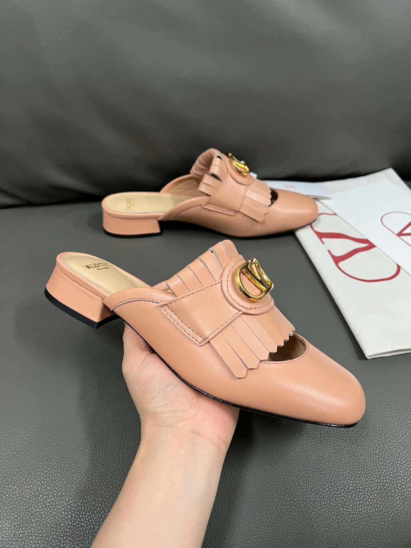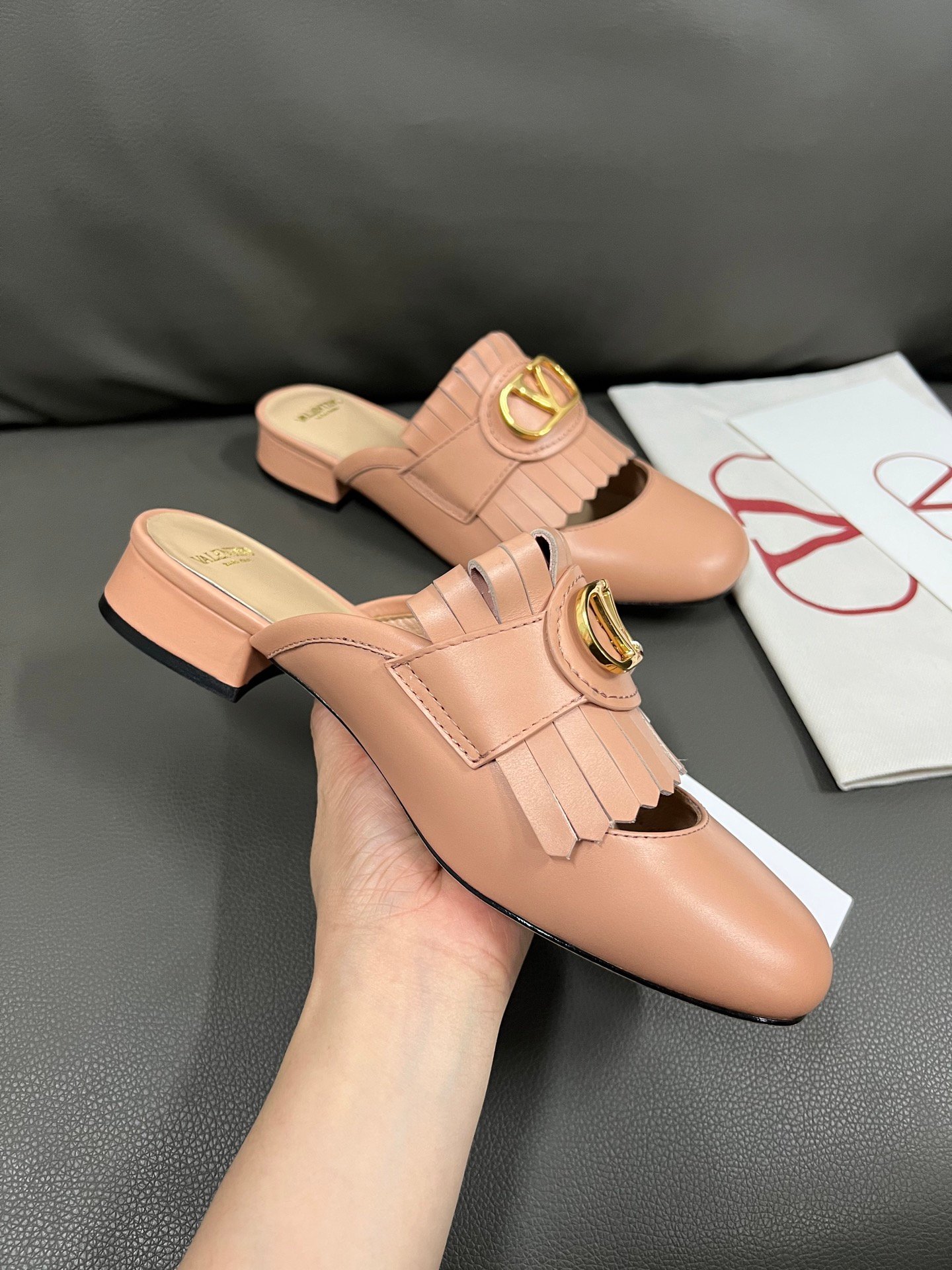 1. Top-Quality Materials and ComfortSelected Leather: Made from rare materials like Italian calfskin, lambskin, and crocodile skin, the touch is soft and durable, naturally conforming to the foot shape when worn.Lining Details: Some shoe models feature built-in memory foam padding or breathable linings, balancing comfort and breathability, making long walks less tiring.Handcrafted Tanning: The leather undergoes special treatment, achieving excellent luster and flexibility, avoiding the stiffness typical of ordinary leather shoes.2. Iconic Design AestheticsStud Elements: The Rockstud collection, characterized by pyramid-shaped studs, has become a brand symbol that combines rebellion and elegance, making it highly recognizable.Architectural Lines: The design of heels and toes often incorporates geometric cuts (such as pointed toes or square heels), visually enhancing foot shape and elongating the legs.Haute Couture Colors: Ranging from classic red (Valentino Red) to seasonal gradient dyes, the colors are highly saturated and resistant to fading.3. Italian Handcraftingover 200 Steps: Each pair of shoes undergoes various handcrafted processes, including cutting, stitching, and polishing, with error control at the millimeter level.Goodyear Welt Technique: Some shoe models use an extended structure, allowing the soles to be replaced, thus extending their lifespan.Decorative Details: Embroidery, sequins, and other embellishments are hand-finished by artisans, such as the feather-decorated styles in the 2023 Autumn/Winter collection, which takes over 20 hours per pair.