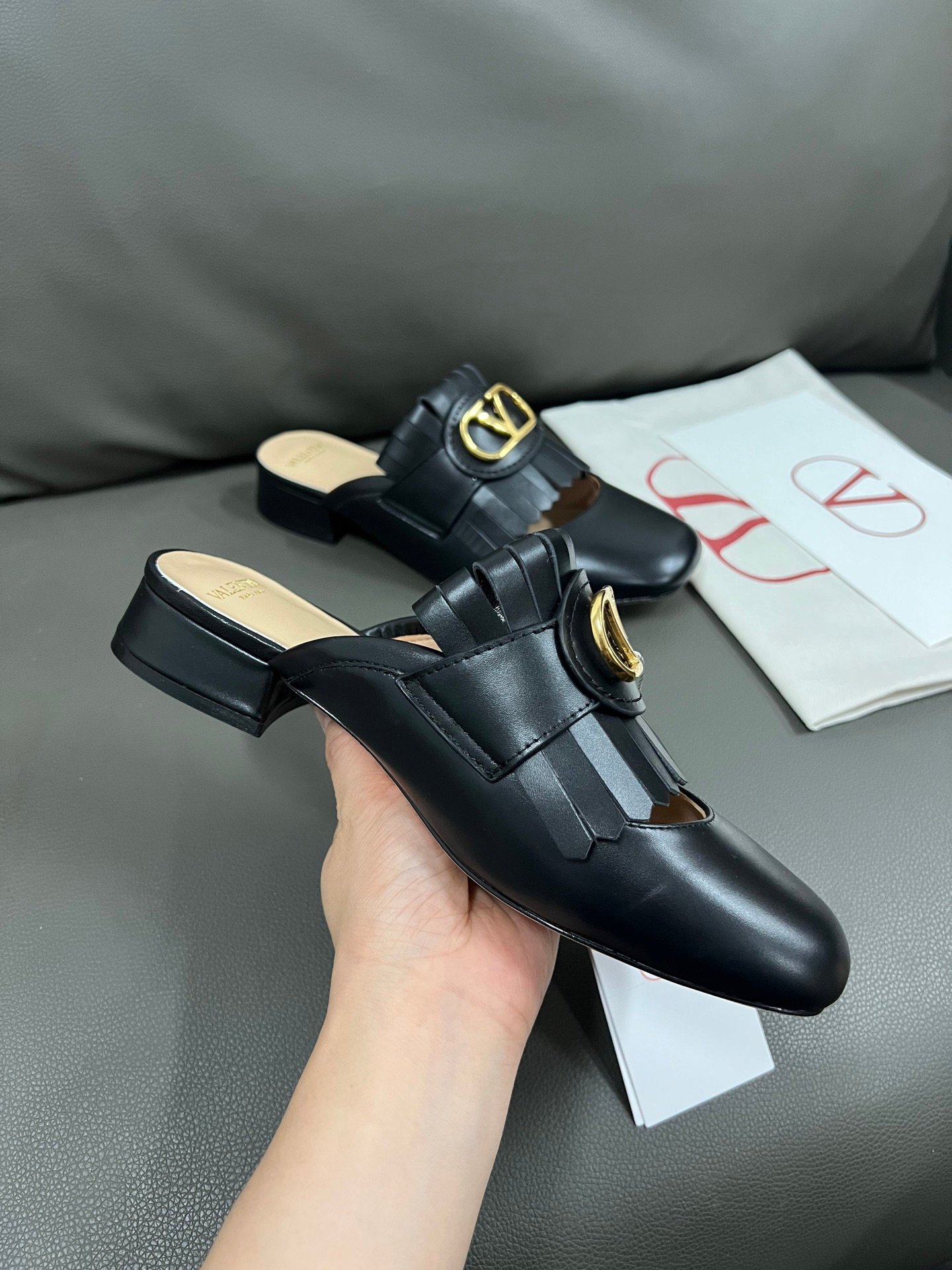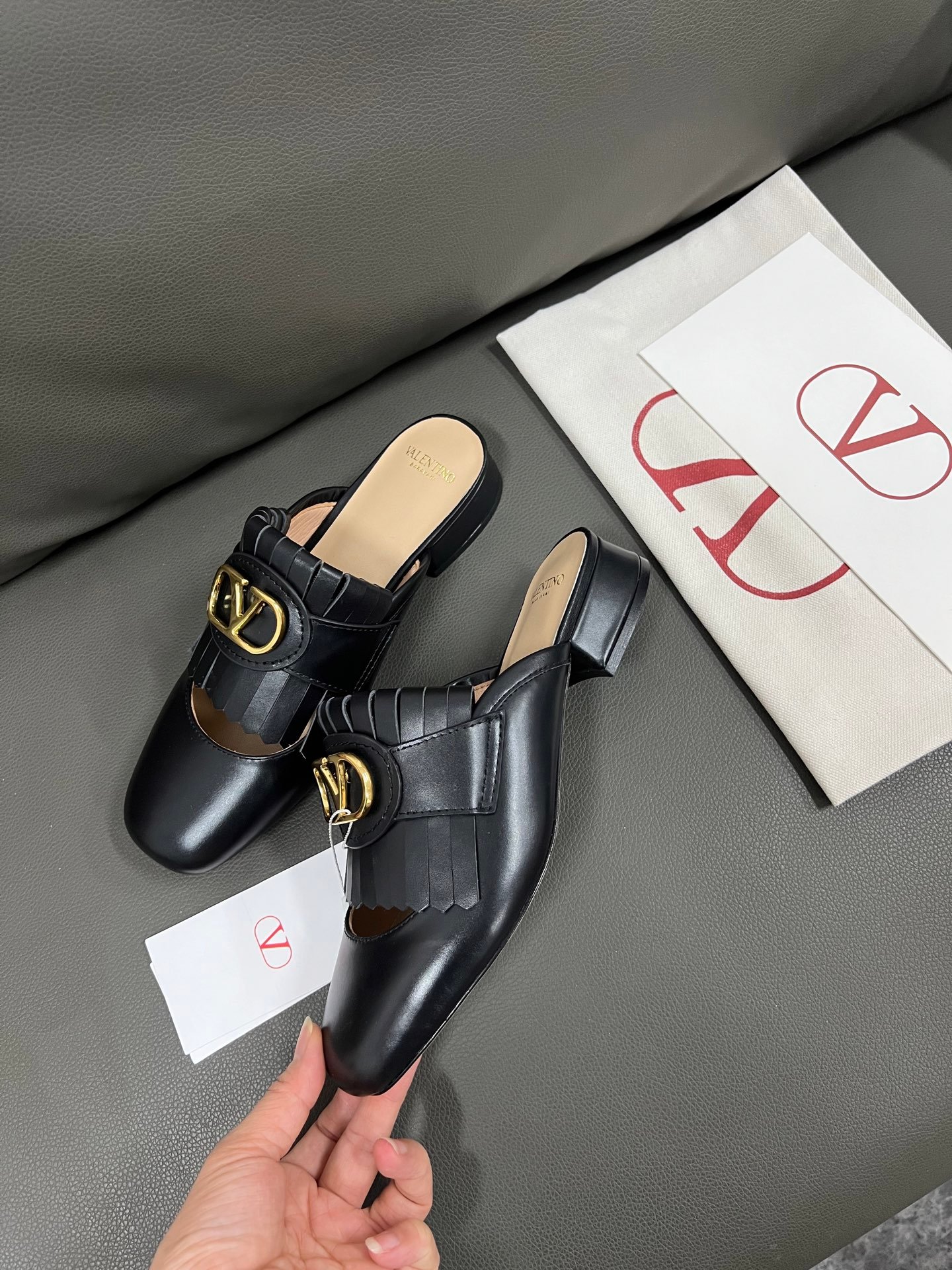 1. Top-Quality Materials and ComfortSelected Leather: Made from rare materials like Italian calfskin, lambskin, and crocodile skin, the touch is soft and durable, naturally conforming to the foot shape when worn.Lining Details: Some shoe models feature built-in memory foam padding or breathable linings, balancing comfort and breathability, making long walks less tiring.Handcrafted Tanning: The leather undergoes special treatment, achieving excellent luster and flexibility, avoiding the stiffness typical of ordinary leather shoes.2. Iconic Design AestheticsStud Elements: The Rockstud collection, characterized by pyramid-shaped studs, has become a brand symbol that combines rebellion and elegance, making it highly recognizable.Architectural Lines: The design of heels and toes often incorporates geometric cuts (such as pointed toes or square heels), visually enhancing foot shape and elongating the legs.Haute Couture Colors: Ranging from classic red (Valentino Red) to seasonal gradient dyes, the colors are highly saturated and resistant to fading.3. Italian Handcraftingover 200 Steps: Each pair of shoes undergoes various handcrafted processes, including cutting, stitching, and polishing, with error control at the millimeter level.Goodyear Welt Technique: Some shoe models use an extended structure, allowing the soles to be replaced, thus extending their lifespan.Decorative Details: Embroidery, sequins, and other embellishments are hand-finished by artisans, such as the feather-decorated styles in the 2023 Autumn/Winter collection, which takes over 20 hours per pair.